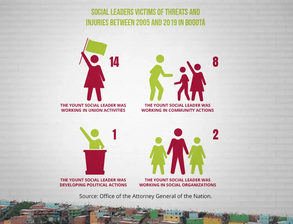 Despite the social conditions, in Ciudad Bolívar, Usme and Bosa, youth leaders emerge to fight for a dignified life in their communities. However, the guarantees for them are questionable.