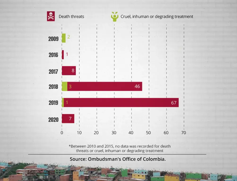 The VisionWeb Institutional Information System of the Ombudsman’s Office registers, from 2009 to February 18, 2020, 135 violations of the rights to life and integrity, due to threats and cruel, inhuman and degrading treatment, whose affected are part of the group social leaders.